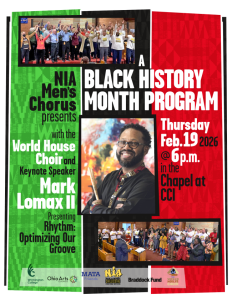 The NIA Men’s Chorus will perform works by African American composer Rosephanye Powell, emerging composers Carlos Brown and Reginald Wright, and an original piece by chorus member Eddie Robertson.